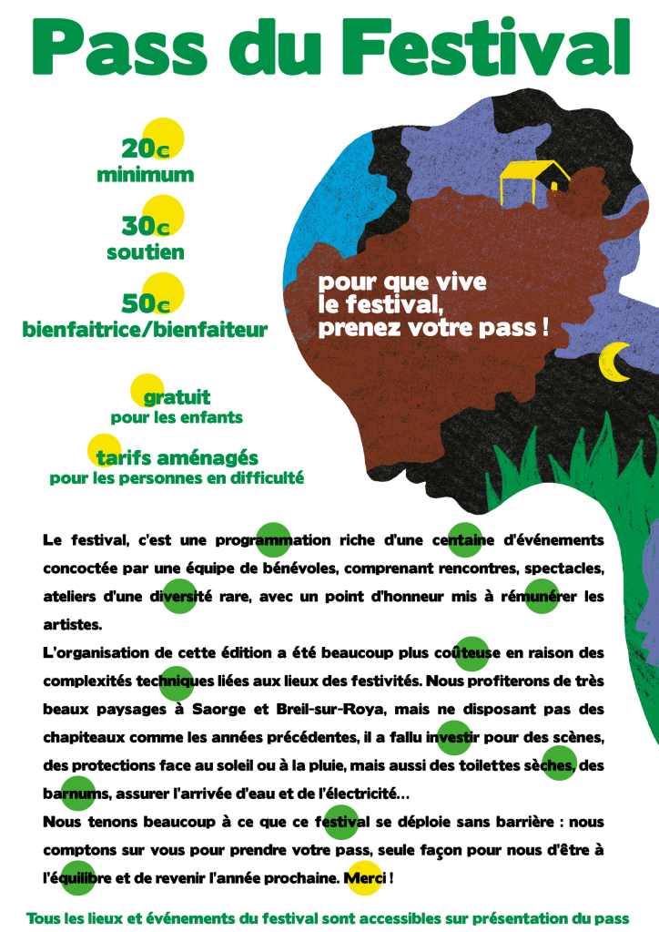 Nous faisons appel à tous ceux qui peuvent louer une chambre, un studio, etc… prêter un canapé, un terrain pour poser sa tente pendant le Festival.
