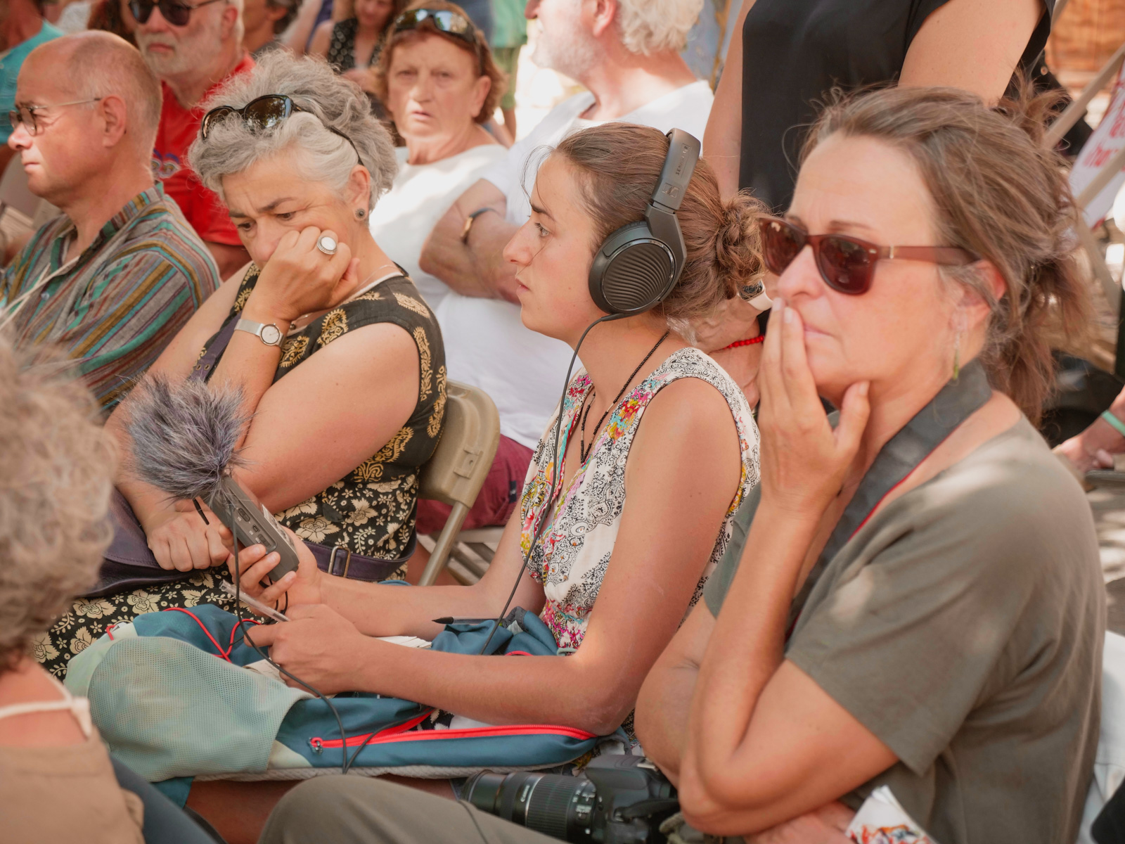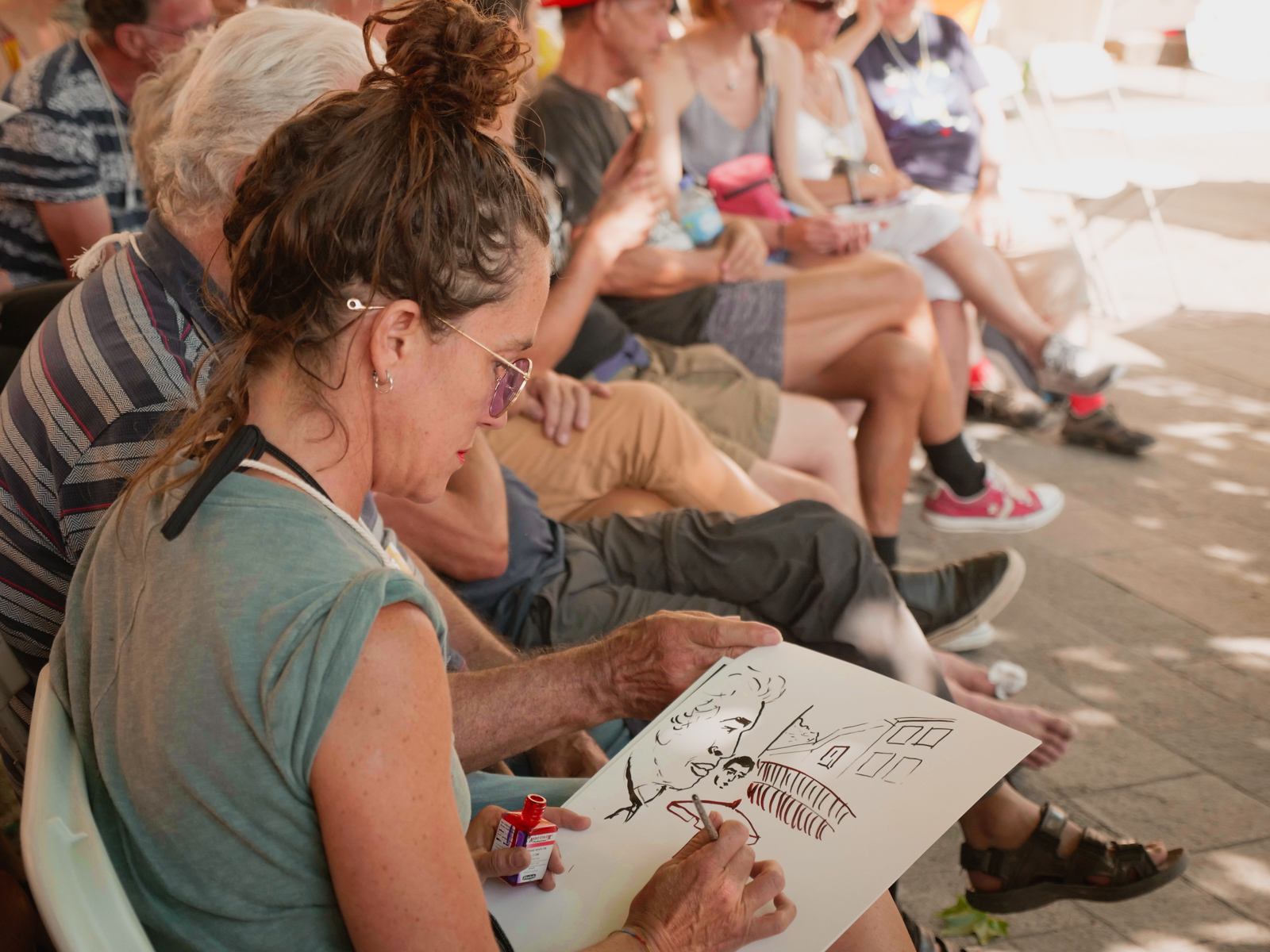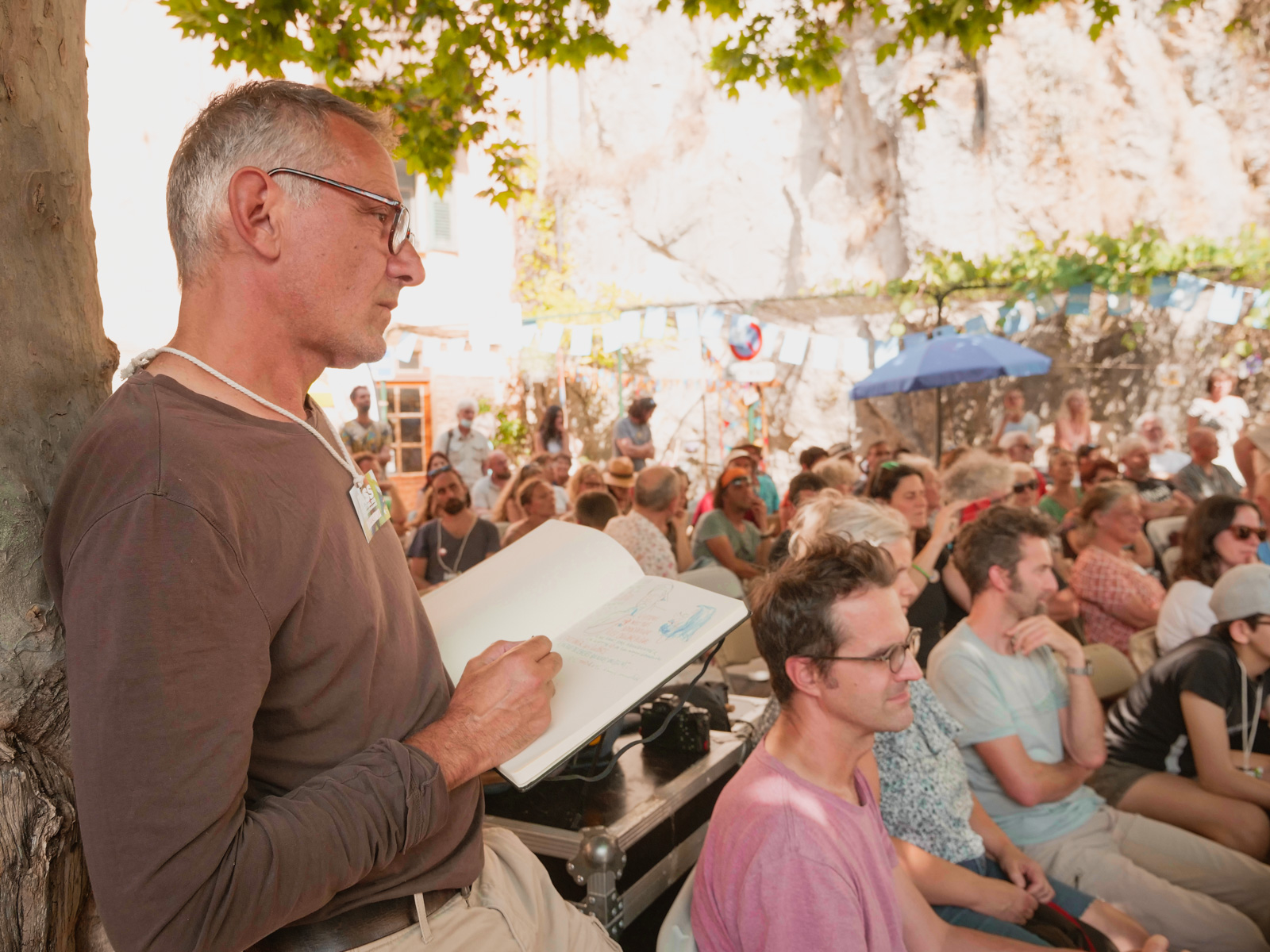 Carole Chaix, Edmond Baudoin à la traduction graphique du débat Armelle Trouxe, Morgane Arrieta Ganault, Marjorie Masseglia et Marc Daniau continuent à dessiner, à garder les traces vives du festival Léa Arson de RTT enregistre pour la capsule sonore du jour