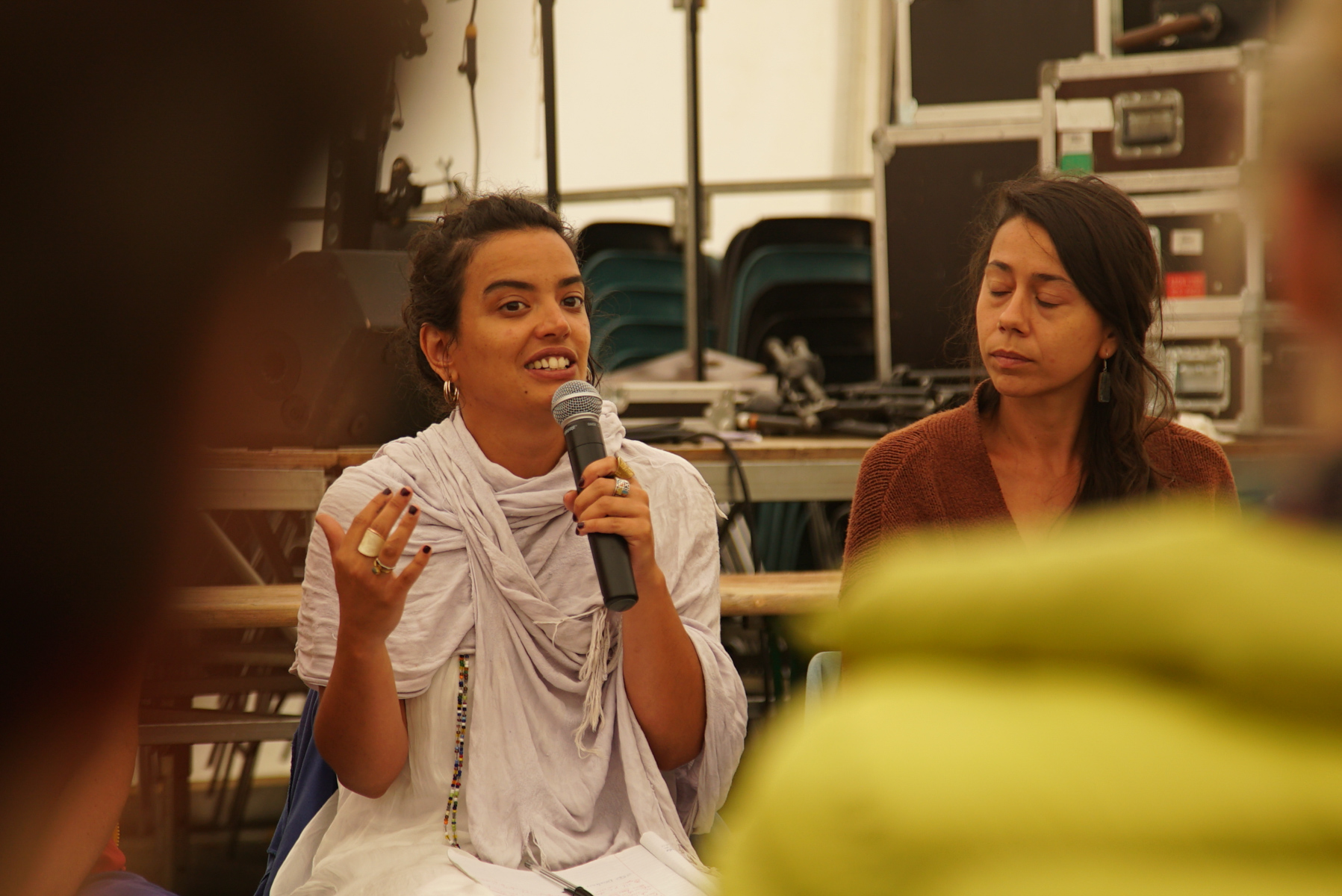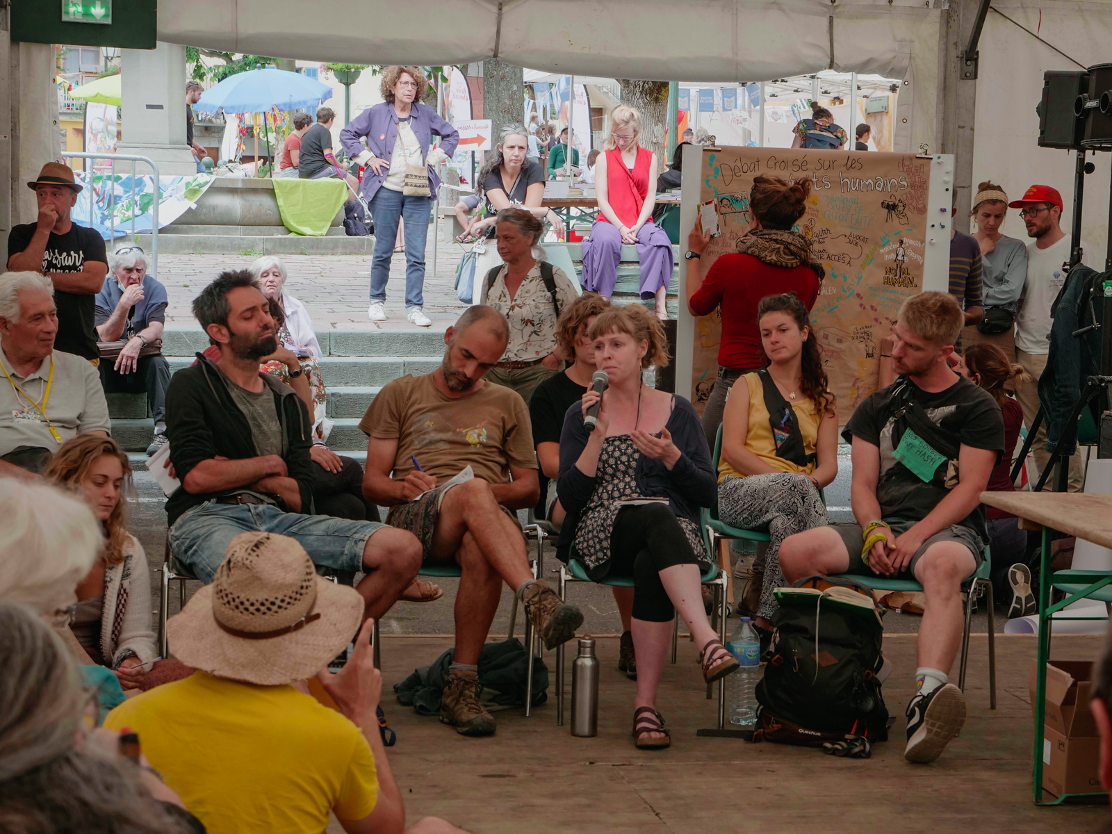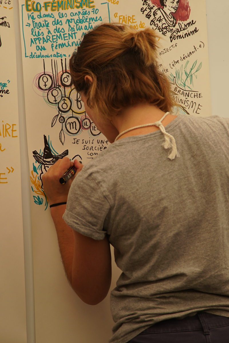 avec Jeanne Burgart-Goutal, philosophe, Raísa Inocêncio, philosophe, Isabella Guedes, artiste visuelle, Cy Lecerf Maulpoix, journaliste, et les actrices de la vallée Morgane Arrieta Ganault, autrice de BD et Laëticia Depagne, éco-psychothérapeute Marjorie Masseglia, Carole Chaix et Marc Daniau à la traduction graphique