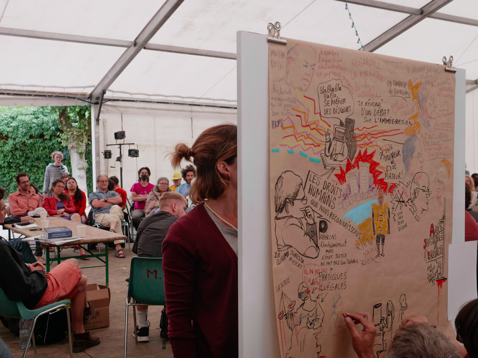 avec Zia Oloumi, avocat et des acteur.ice.s de la solidarité : Kesha Niya, Projetto, CCFD, l’ANAFE, animé par Suzel Prio Carole Chaix, Morgane Arrieta Ganault et Marjorie Masseglia à la traduction graphique