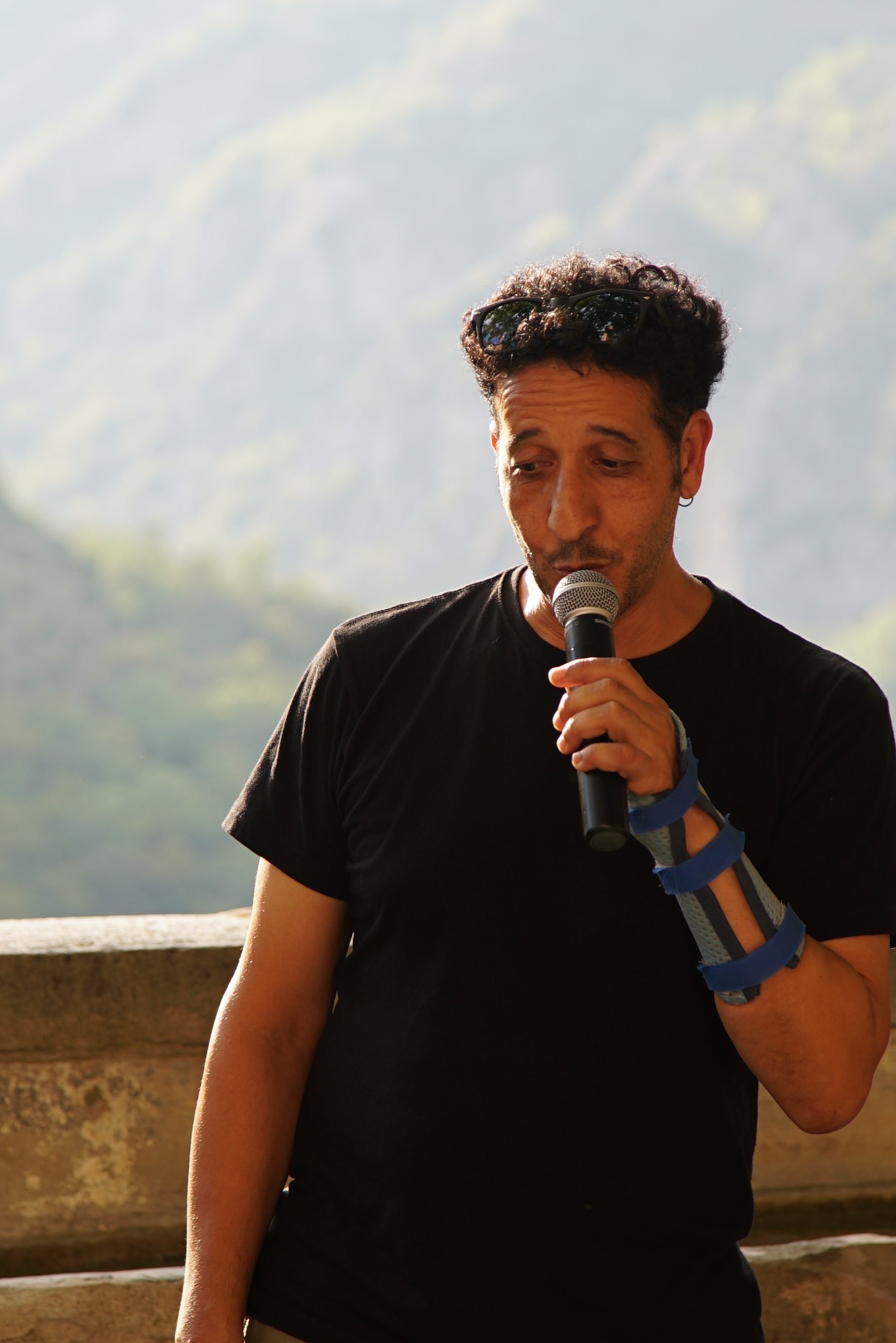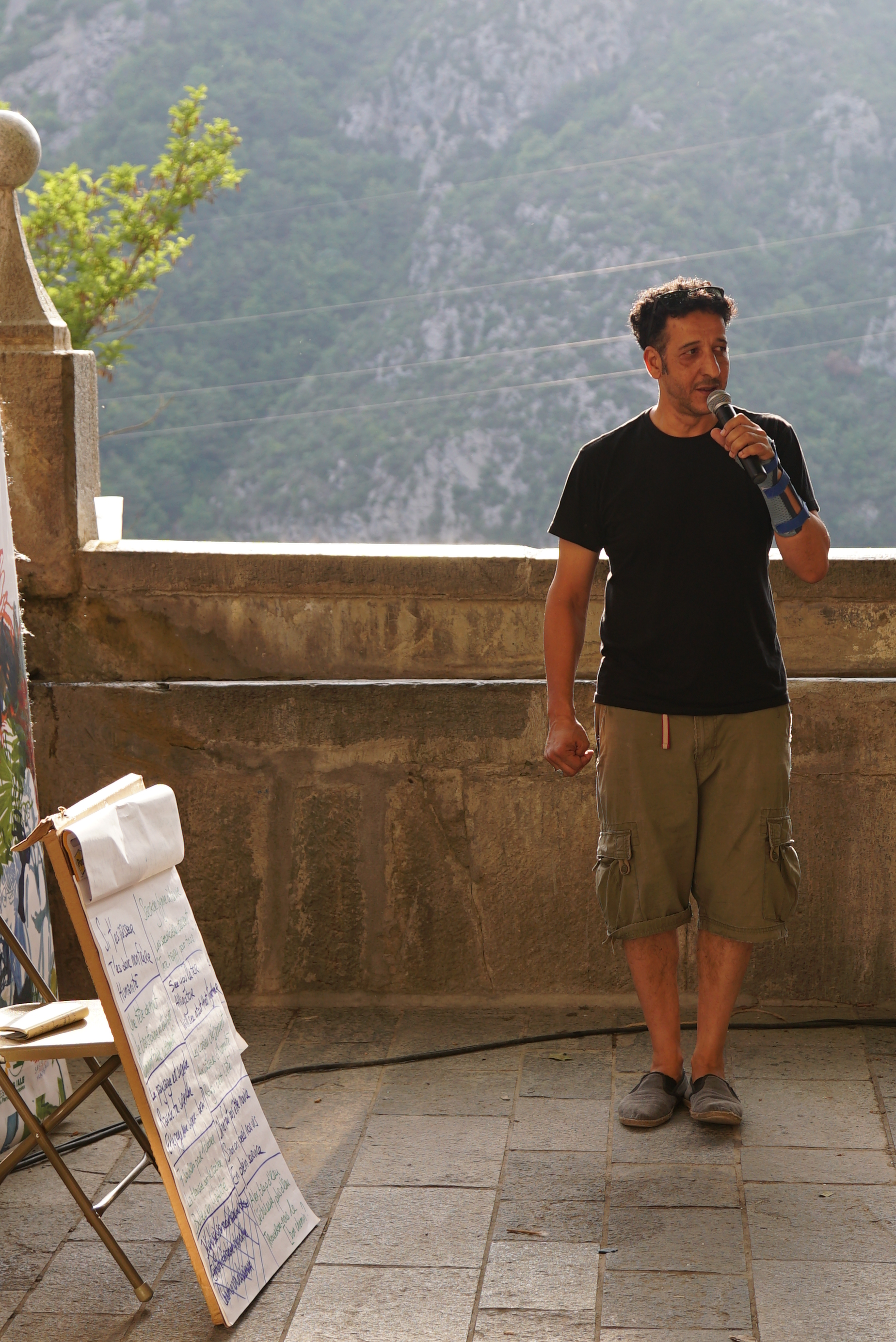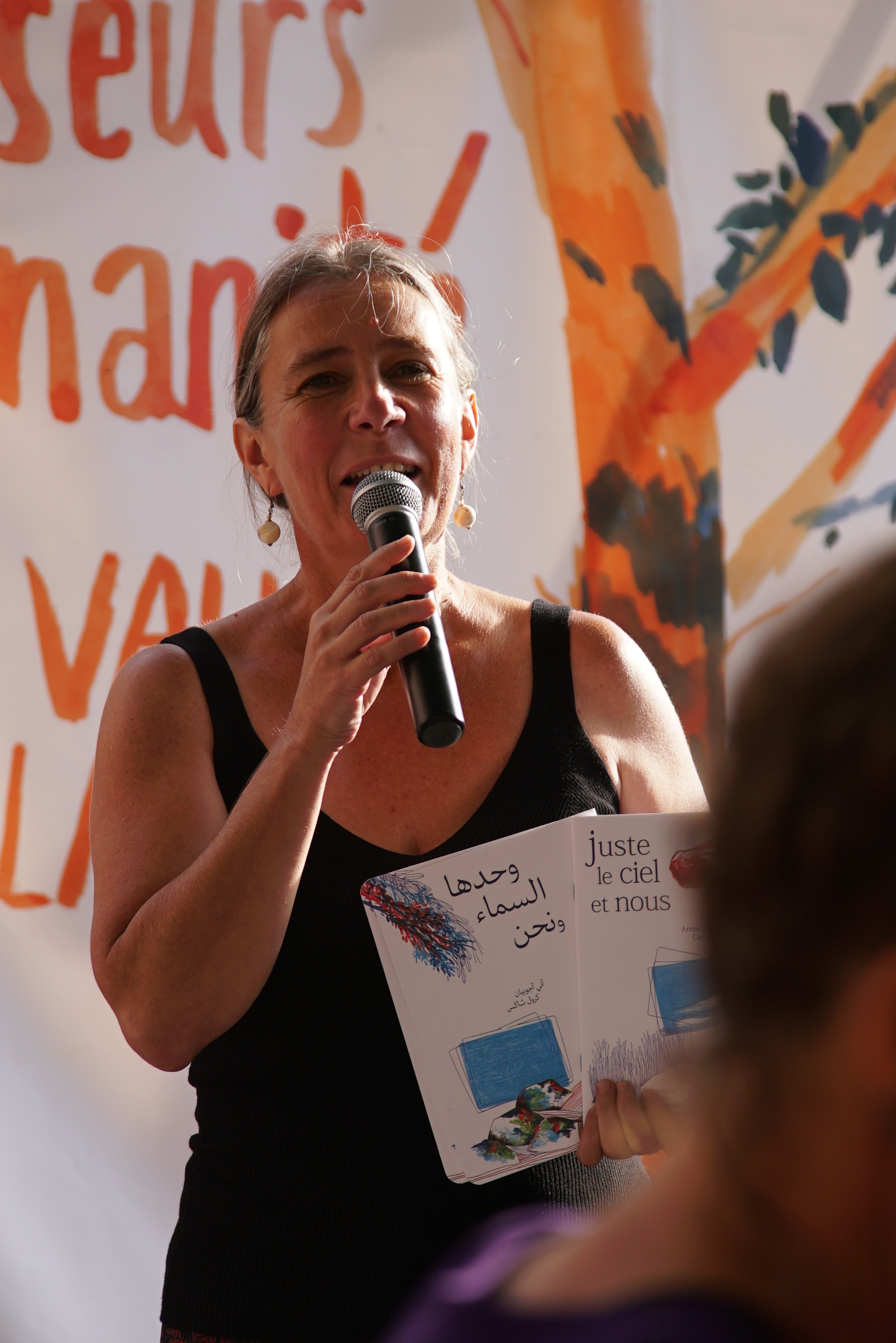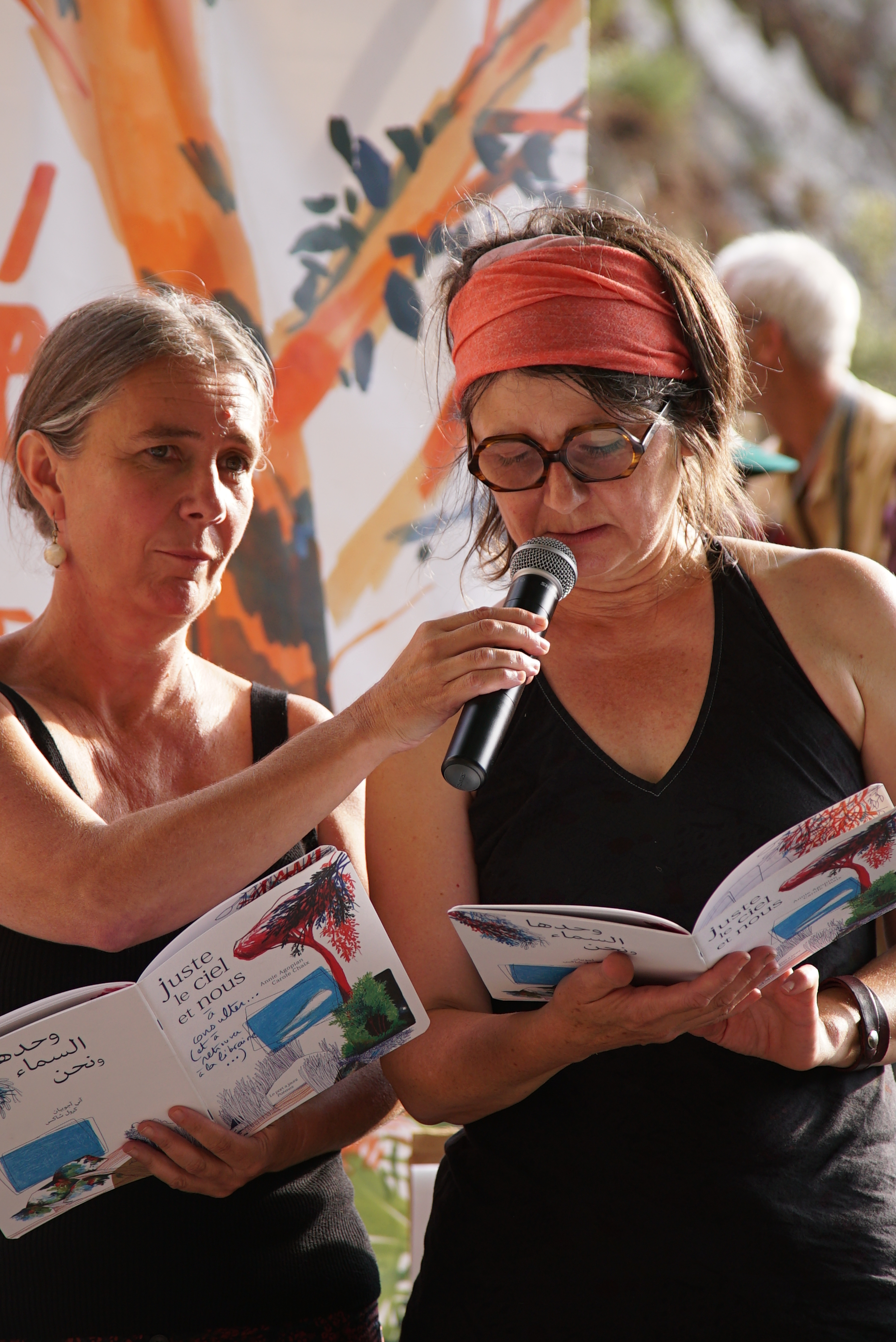 Mo Abbas lit les haïkus des festivalières et festivaliers